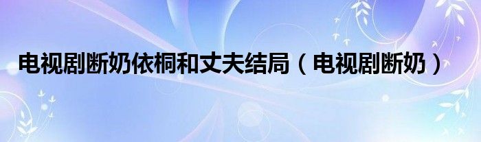 大家好,小金来为大家解答以上的问题。电视剧断奶依桐和丈夫结局,电视剧断奶这个很多人还不知道,现在让我们一起来看看吧!