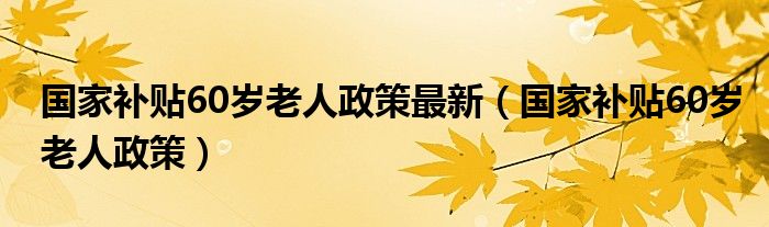 国家补贴60岁老人政策最新(国家补贴60岁老人政策),急到失眠,求好心人帮忙!