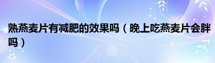 熟燕麦片有减肥的效果吗(晚上吃燕麦片会胖吗),有没有人理我啊?急死个人!