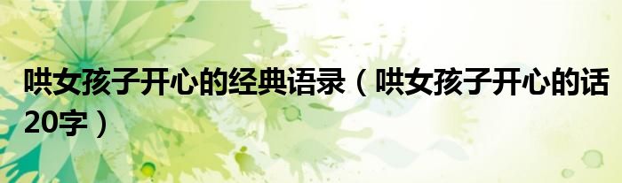 大家好,我是小跳,我来为大家解答以上问题。哄女孩子开心的经典语录,哄女孩子开心的话20字很多人还不知道,现在让我们一起来看看吧!
